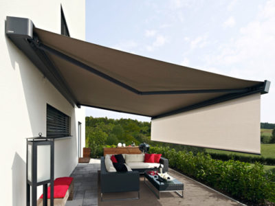 • Kaum sichtbar am Ausfallprofil der Markise montiert
